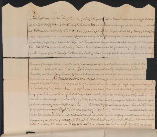 Indenture between Jesse Hunt, Sheriff of Westchester County, and Benjamin Palmer of Westchester County, February 12, 1785