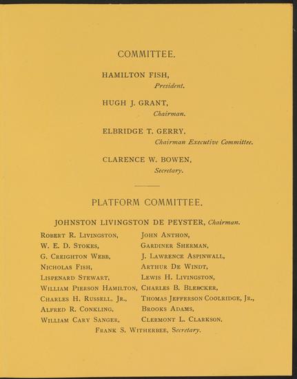 Program of literary exercises at the Sub-Treasury building in commemoration of the inauguration of George Washington, April 30, 1889