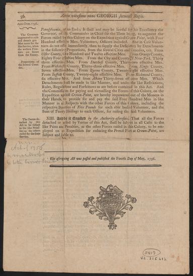 An Act for the more speedy and effectual raising the Forces to be furnished by this Colony, on the Expedition against Crown-Point