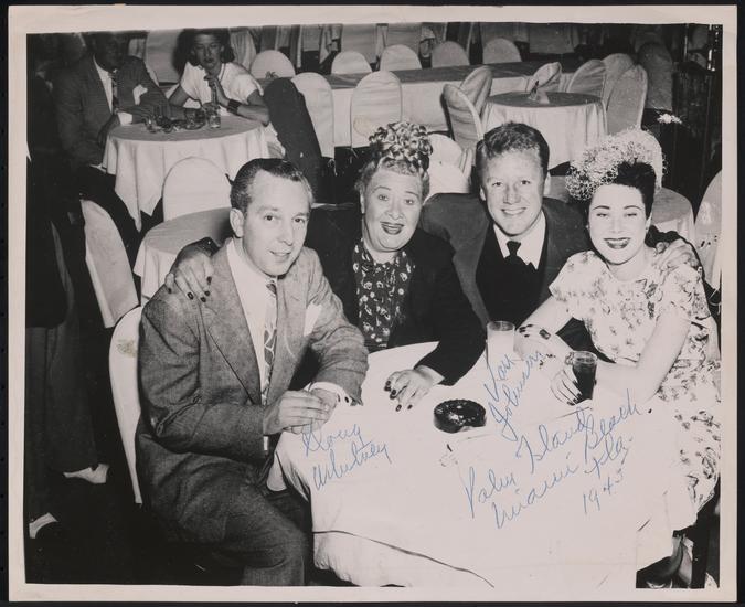 [Sophie Tucker with group of people at the Hollywood Beach Hotel.]