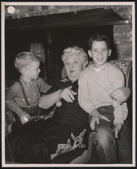 [Sophie Tucker with boy at Hollywood Beach Hotel.]