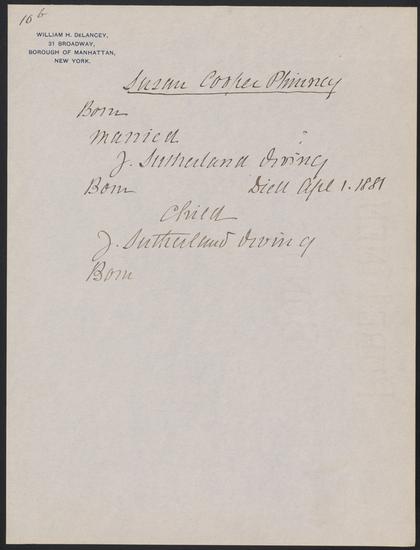 Undated De Lancey family genealogy compiled by William H. De Lancey