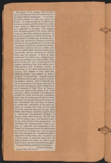 Undated annotated journal of newspaper clippings kept by Edward Floyd De Lancey
