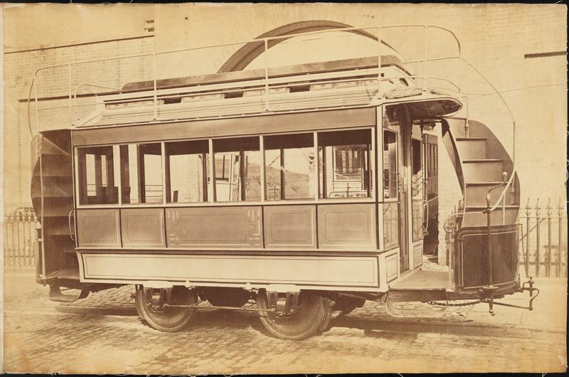 Double-decker Cars [Hull Street Tramway No. 20 streetcar with knifeboard seating on upper deck.]