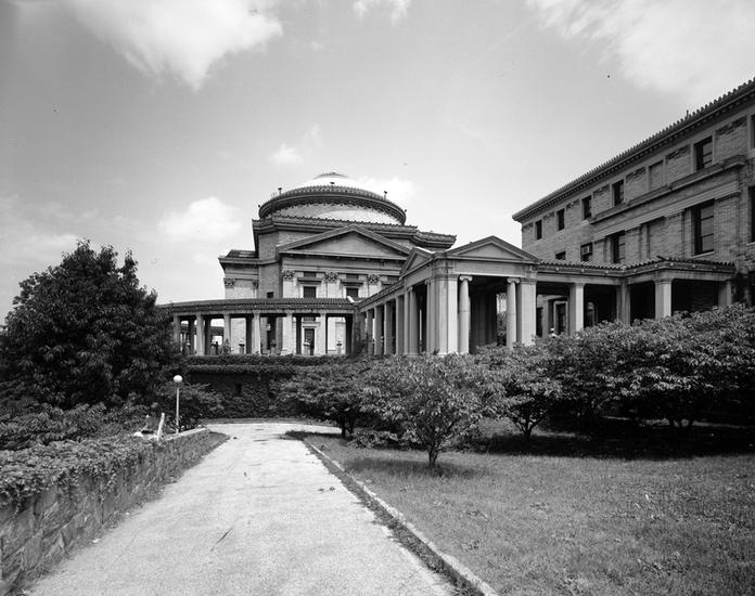 "Hall of Fame." N.Y. University colonnade surrounds the library. 150 panels for distinguished Americans.