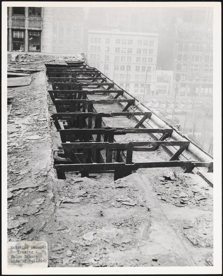 New Construction on Union Square side of building, of roof parapet [Reconstruction of the facade of the old Tiffany Building, 15 Union Square West.]