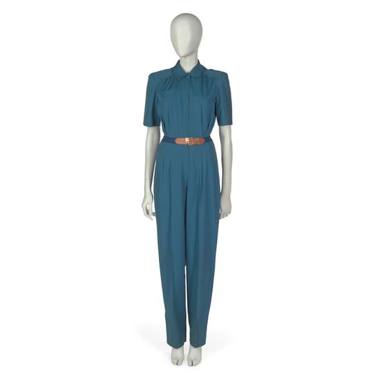 Ensemble in navy silk broadcloth comprising jumpsuit and jacket