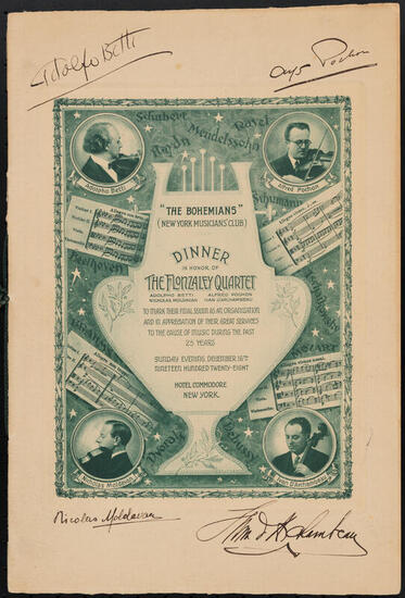 "The Bohemians" (New York Musicians' Club) Dinner to the Flonzaley Quartet. Seating List at the Guest Table