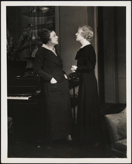 [Blanche Bates as Lena Surrege, Geoffrey Wardwell as Cecil Hervey and Katharine Hepburn as Stella Surrege in "The Lake".]