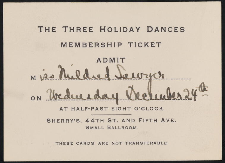 [Men's guest tickets for the Three Holiday Dances.]