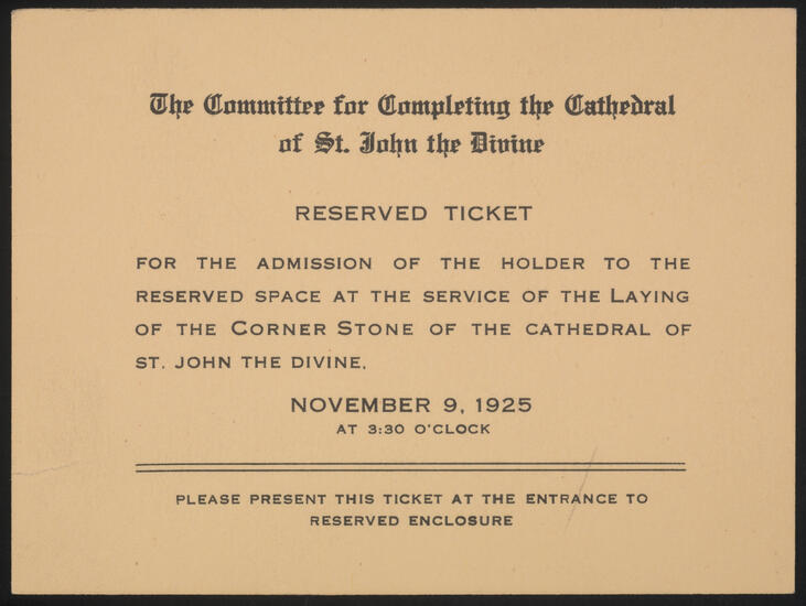 The Office for the Laying of the Corner Stone of the Cathedral Church of Saint John the Divine