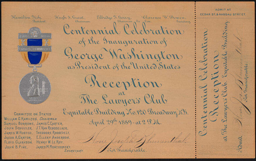 Centennial Celebration of the Inauguration of George Washington as President of the United States. Reception at the Lawyers' Club
