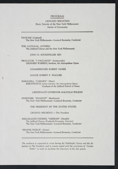 Lincoln Center for the Performing Arts Ground-Breaking Ceremony