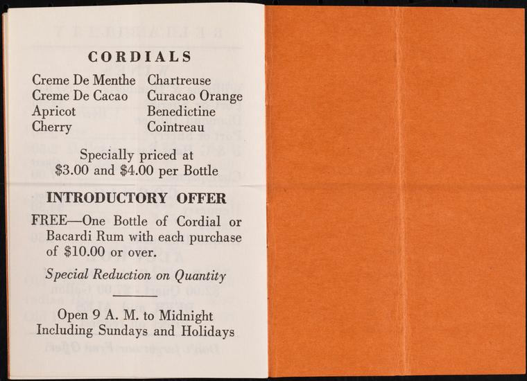 The Finest of Wines, Liquors, Cordials and Gins Are Available