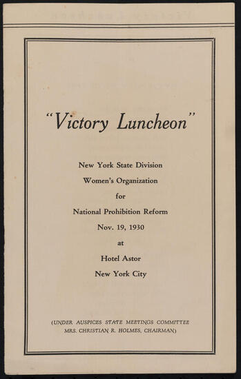 New York State Division. Women's Organization for National Prohibition Reform. Victory Luncheon