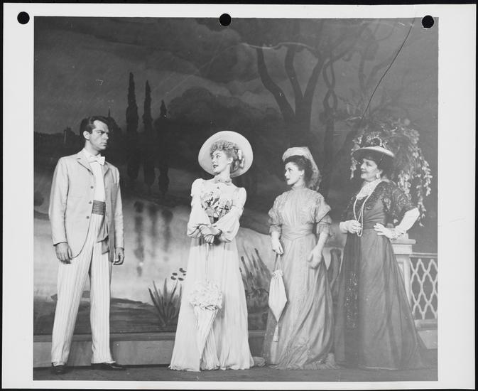 [Betty Paul as Maggie Wylie, Irene Bordoni as Madame Marstonne, Keith Andes as John Shand and Celia Lipton as Sybil Tenterdon in "Maggie".]