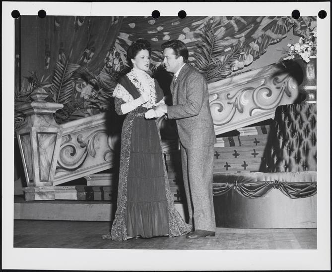 [Keith Andes as John Shand and Betty Paul as Maggie Wylie in "Maggie".]