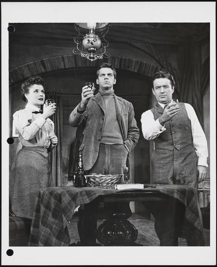 [Betty Paul as Maggie Wylie, Keith Andes as John Shand and Celia Lipton as Sybil Tenterdon in "Maggie".]