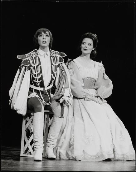 [Joel Higgins as Sebastian and Sherry Mathis as Olivia in "Music Is".]