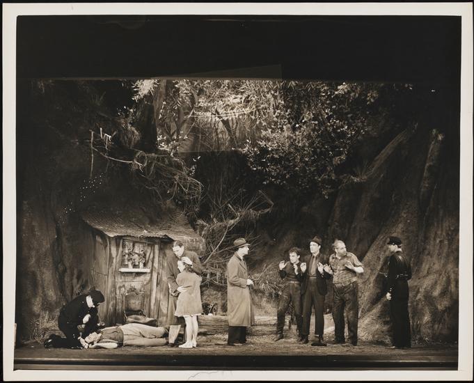 [Victor Kilian as Ben, Ben Smith as Mr. Stewart and Sally Bates as Mrs. Stewart in "Solitaire".]