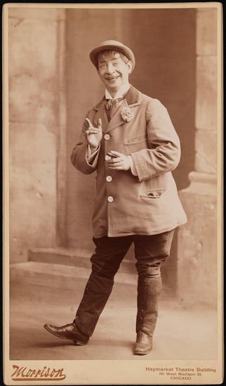 [James T. Powers as Biggs the Clown in "The Circus Girl".]