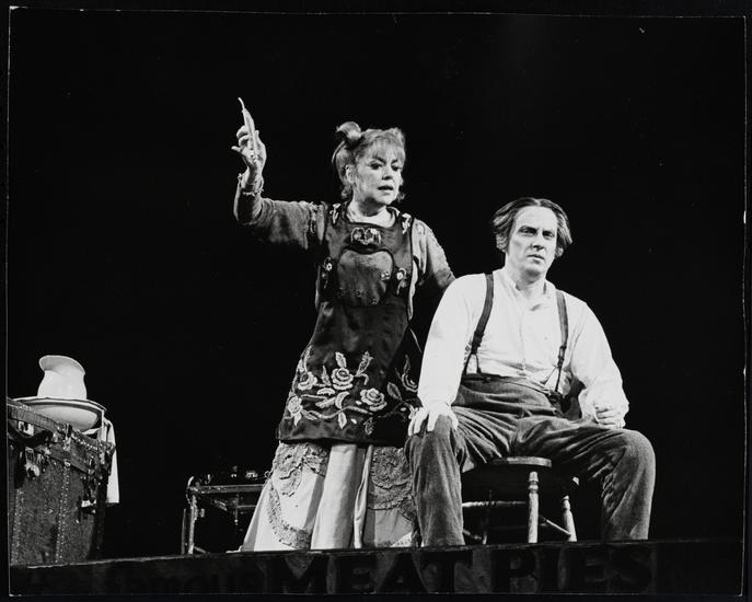 [Dorothy Loudon as Mrs. Lovett and George Hearn in the title role of "Sweeney Todd".]