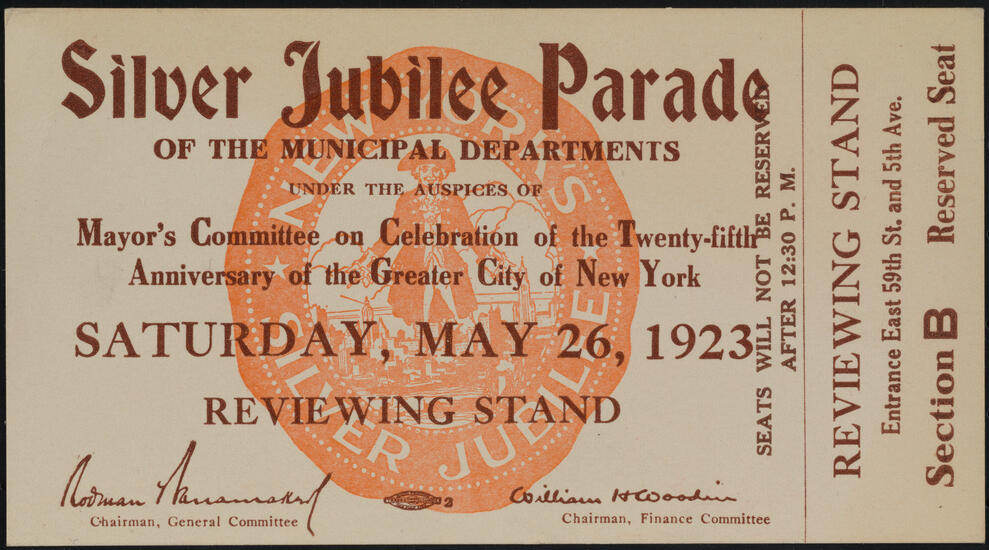 Mayor's Committee, Celebration, Silver Jubilee, New York. 25th Anniversary of the Greater City of New York