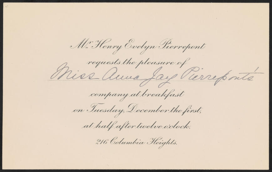 [Mr. Henry E. Pierrepont requests the pleasure of your company.]