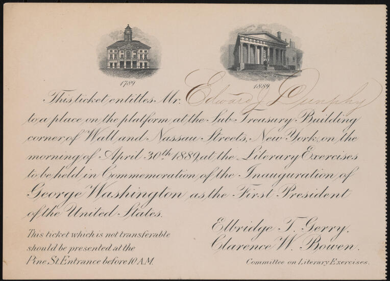 [Centennial Celebration of the Inauguration of George Washington as President of the United States.]
