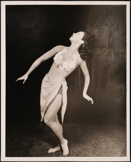 [Andrea Downing, Faith Dane, Milada Mladova, Alla Shishkina and Mary Grey as dancers in "Sadie Thompson".]