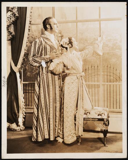 [Lewis Casson as Lord Melbourne and Helen Hayes as Victoria in "Victoria Regina".]