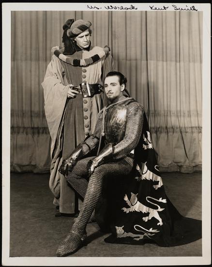 [Maurice Evans as the title role and Kent Smith as Bolingbroke (Henry IV) in "King Richard II".]