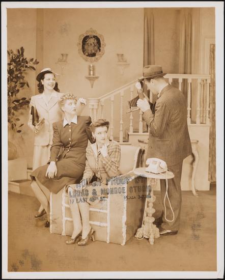 [Lionel Ince as Captain Lake, Celeste Holm as Lady Keith-Odlyn and Betty Furness as Lady Palfrey-Stuart in "My Fair Ladies".]