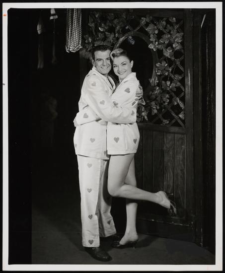 [Larry Douglas as Sid Sorokin and Barbara Bostock as Gladys in a touring company of "The Pajama Game".]
