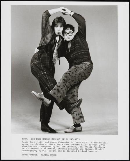 [Laura Dean, Jeff Keller, Trey Wilson, Dee Hoty, Nancy Opel and Jason Alexander in "Personals".]