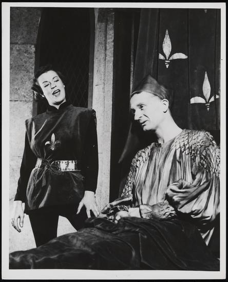 [John Buckmaster as The Dauphin and Uta Hagen as Joan in "Saint Joan".]