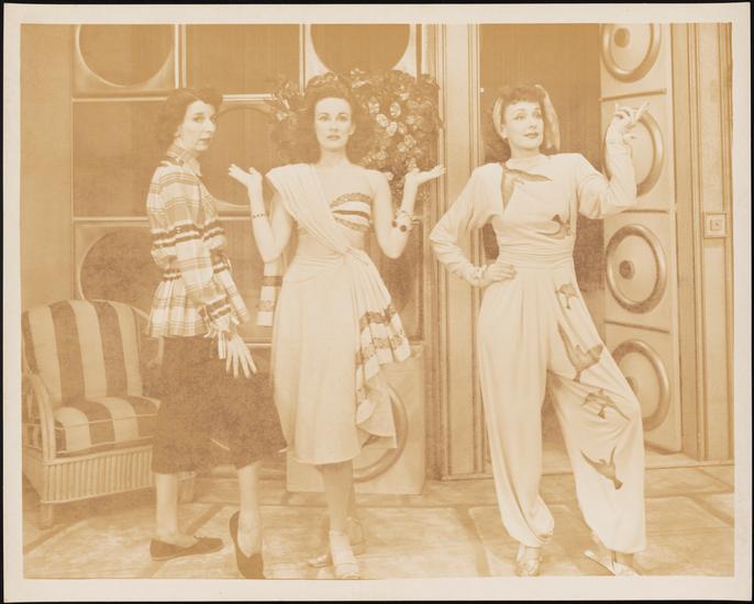 [Martha Stewart as Madge Bennett, Leonora Corbett as Mrs. Sybil Bennett and Raymond Walburn as Richard Nelson in "Park Avenue".]
