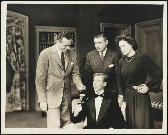 [Jack Davis as J. B. Curtis, Peter Scott as Merrill Feurbach and Joan Newton as Lois Graves in "Junior Miss".]