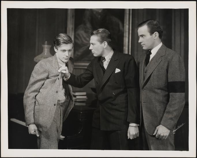 [Peter Fernandez as Wakefield, Robert Shayne as Renny and Richard Carlson as Piers in "Whiteoaks".]