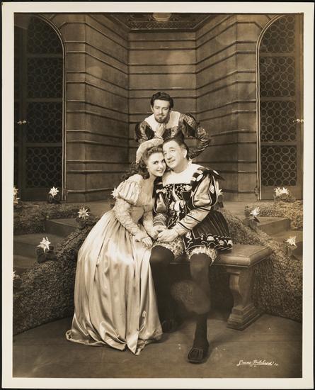 [Beverly Tyler as Angela, Melville Cooper as Duke and Ferdi Hoffman as Ottaviano in "The Firebrand of Florence".]