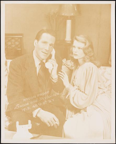[K. T. Stevens as A Girl and Hugh Marlowe as Mark McPherson in "Laura".]