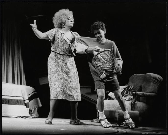 [Max Loving as Young Momo and Georgia Brown as Madame Roza in "Roza".]