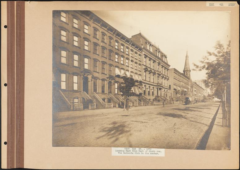 West 42d St.- 1876. Looking East from East of Sixth Ave. The Harmonie Club in the center | J. Clarence Davies Street Views Scrapbook