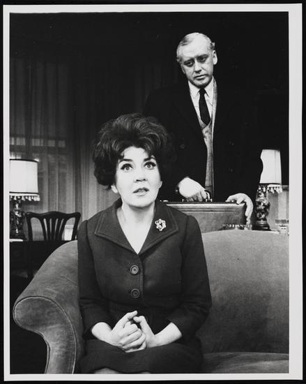 [Maureen Stapleton as Karen Nash and E. G. Marshall as Sam Nash in the "Visitor From Mamaroneck" story in "Plaza Suite".]