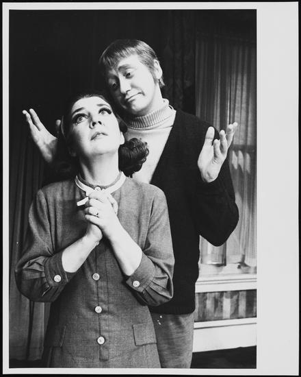 [Maureen Stapleton as Karen Nash and Nicol Williamson as Sam Nash in the "Visitor From Mamaroneck" story in "Plaza Suite".]