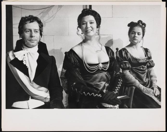 [Rosemary Harris as Julie Cavendish, Eva Le Gallienne as Fanny Cavendish and Ellis Rabb as Tony Cavendish in "The Royal Family".]