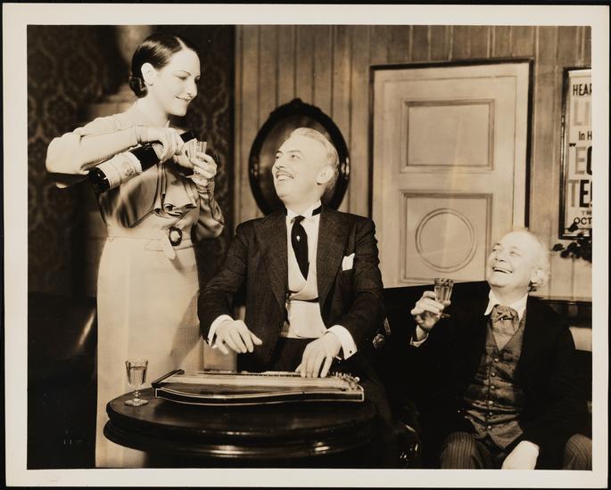 [Jane Pickens as Frieda Hatzfeld, Charles Winninger as Dr. Walter Lessing and Dennis King as Bruno Mahler in "Music in the Air".]