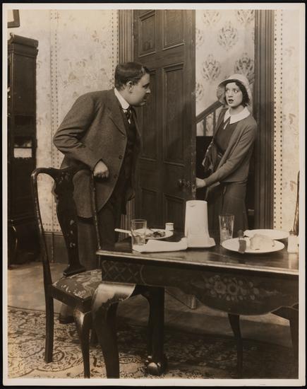 [Dorice Fordred as Madame Collins and Charles Laughton as William Marble in "Payment Deferred".]