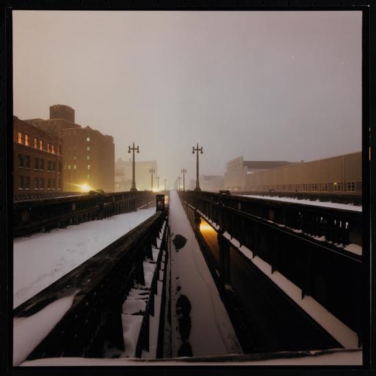 My ski tracks on the Manhattan Bridge in the blizzard of 1983