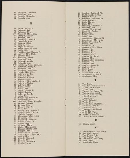 "The Bohemians" (New York Musicians' Club) Dinner to the Flonzaley Quartet. Seating List at the Guest Table